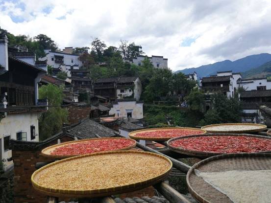 8月9日上午,队员们来到篁岭,了解村子发展状况。这里原先是一个贫困山村,近年来凭借古村落建筑群这一亮点,篁岭又重新焕发出勃勃生机,成为经典的扶贫范例。
