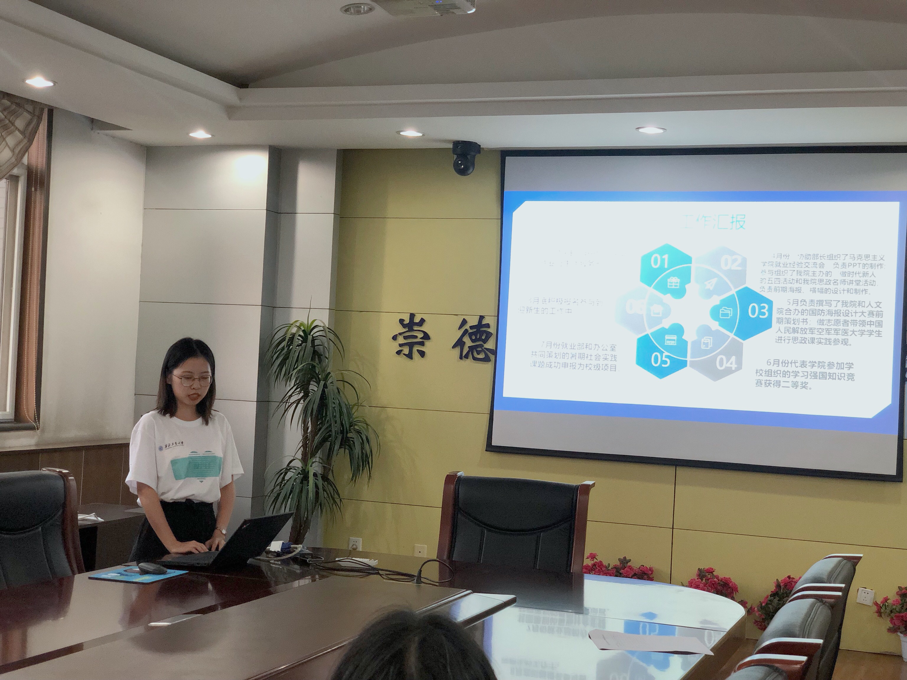 任静从她参与的往期活动、工作计划和竞选目的三方面进行答辩。她总结了前期参加的主题团日活动和社会实践活动,在之后的工作规划中她提出要加强团队内部组织建设、继承弘扬研究生会的优良传统以及改进当前工作中的不足。