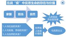 从马克思主义基本原理视角反思疫情,以家国、担当、自然三个关键词入手,反思疫情防控中个人与社会、国家、世界之间的共同体关系,引导学生认识到,疫情以独特的方式反映出个体利益与社会利益高度一致,因此,每个普通人的担当精神尤为重要,同时,引导大家反思人类与自然之间如何形成和谐共生关系。通过以上疫情防控专题,引出课程教学内容。