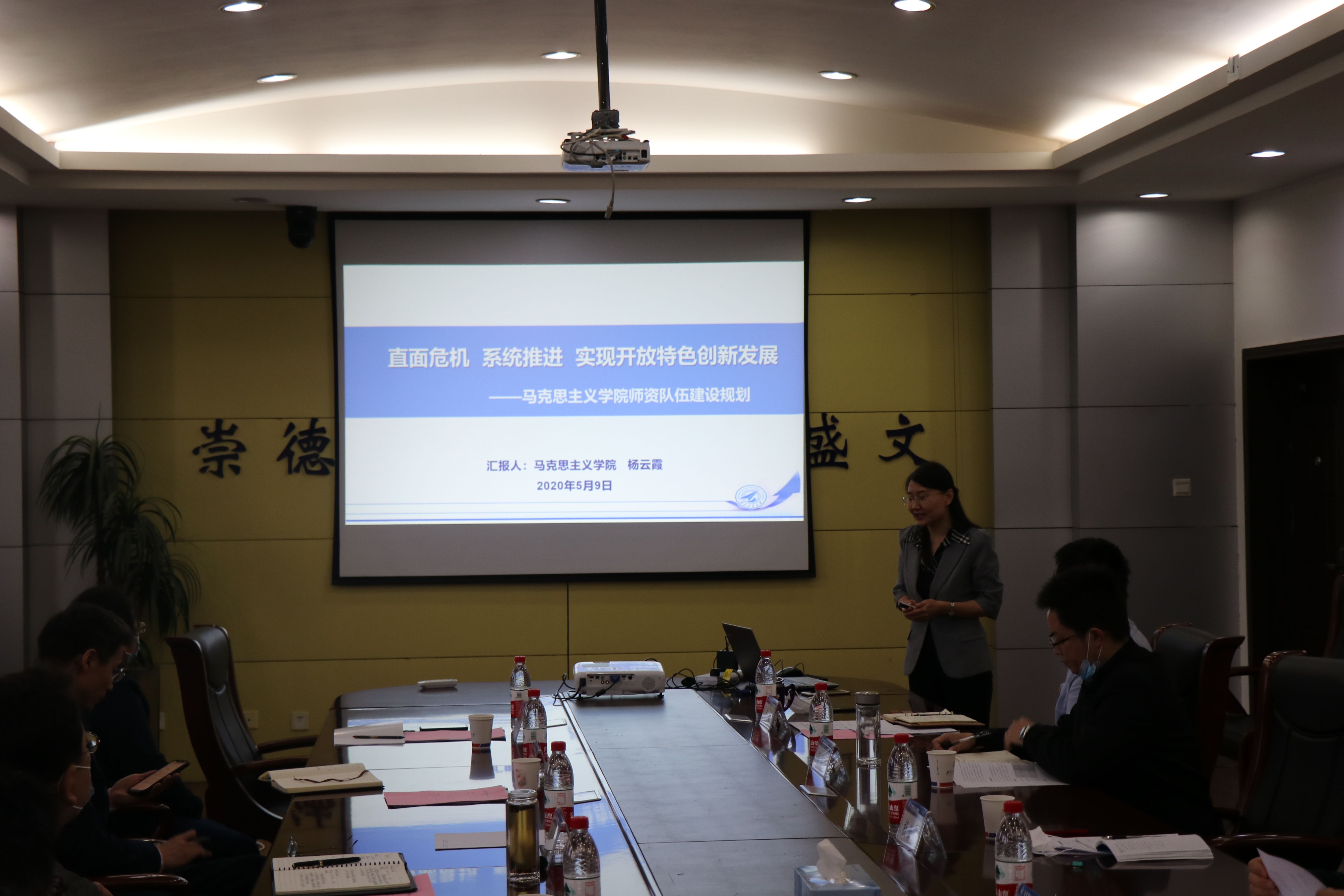 院长杨云霞围绕学院师资队伍现状,“十四五”学院师资队伍规划,各类学术标准修订中的破“五唯”落实情况,“引育配用”拟采取的主要举措以及相关的条件保障等几个方面做了《直面危机 系统推进实现开放特色创新发展的师资队伍建设规划》的汇报。