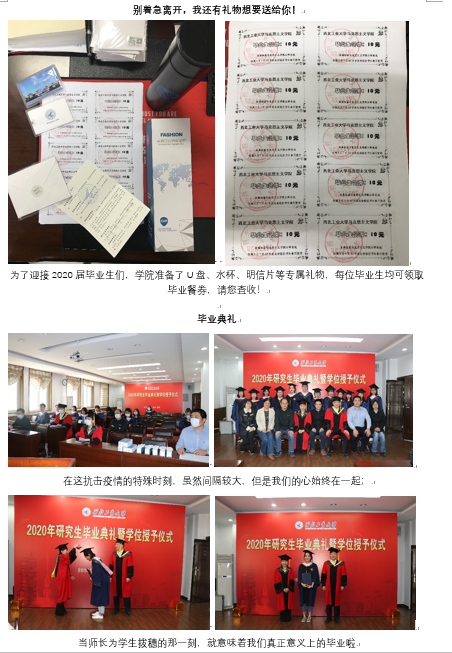 韦子琦:三年的时光转瞬即逝,在西工大马院我学习到了知识,收获到了宝贵的经历。感恩同学们的友爱团结,感恩老师们的谆谆教诲,感恩母校与学院为我们提供的学习平台与资源。祝愿同学们前程似锦,祝愿老师们工作顺利,祝愿母校与学院事业长青,蒸蒸日上!