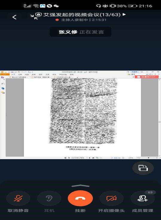 本次读书会持续将近三个小时。最后,主持人对几位老师的论述作了总结,希望大家能够下功夫仔细研读经典篇目,并对几位老师的参与表示了感谢,尤其是对魏老师与张老师的认真指导表达了感激之情,希望今后兄弟院校的马院师生能继续通过读书会进行更广泛深入的交流。在大家的感谢声中,本次读书会圆满结束。
