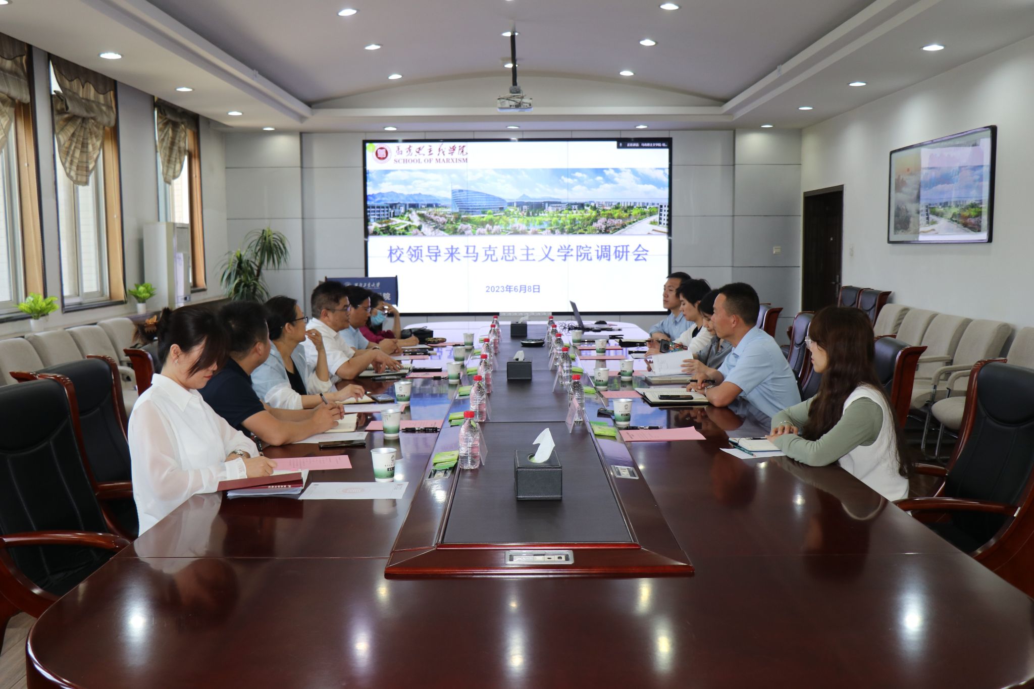长杨云霞代表学院作《集全校之力,重系统推进,实现开放特色创新发展》主题汇报,就学院党的建设、师资队伍、思政课教学、学科建设、人才培养、特色优势等方面作了详细汇报,并提出了目前学院发展中存在的问题和不足及学院下一步发展规划。与会同志依次结合自身岗位进行了补充汇报。