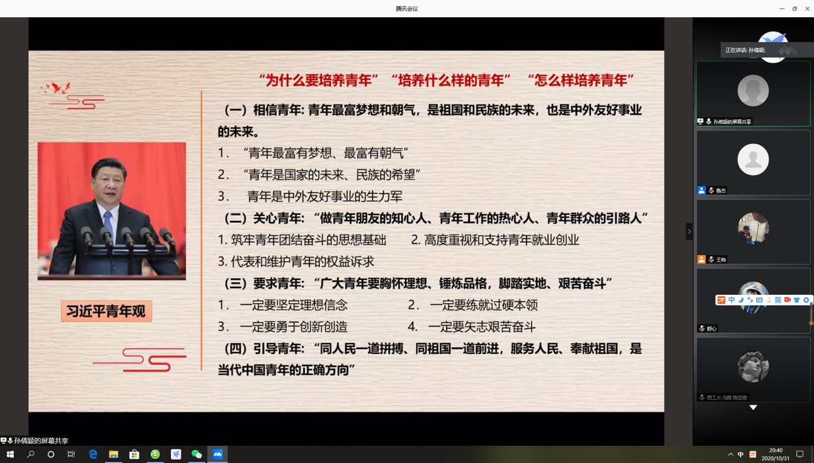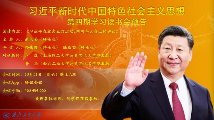 于2020年10月31日晚7:30举办了习近平新时代中国特色社会主义思想学习读书会第四期交流活动,本次读书会主题主要围绕《习近平在纪念五四运动100周年大会上的讲话》进行展开。此次活动由Acfan