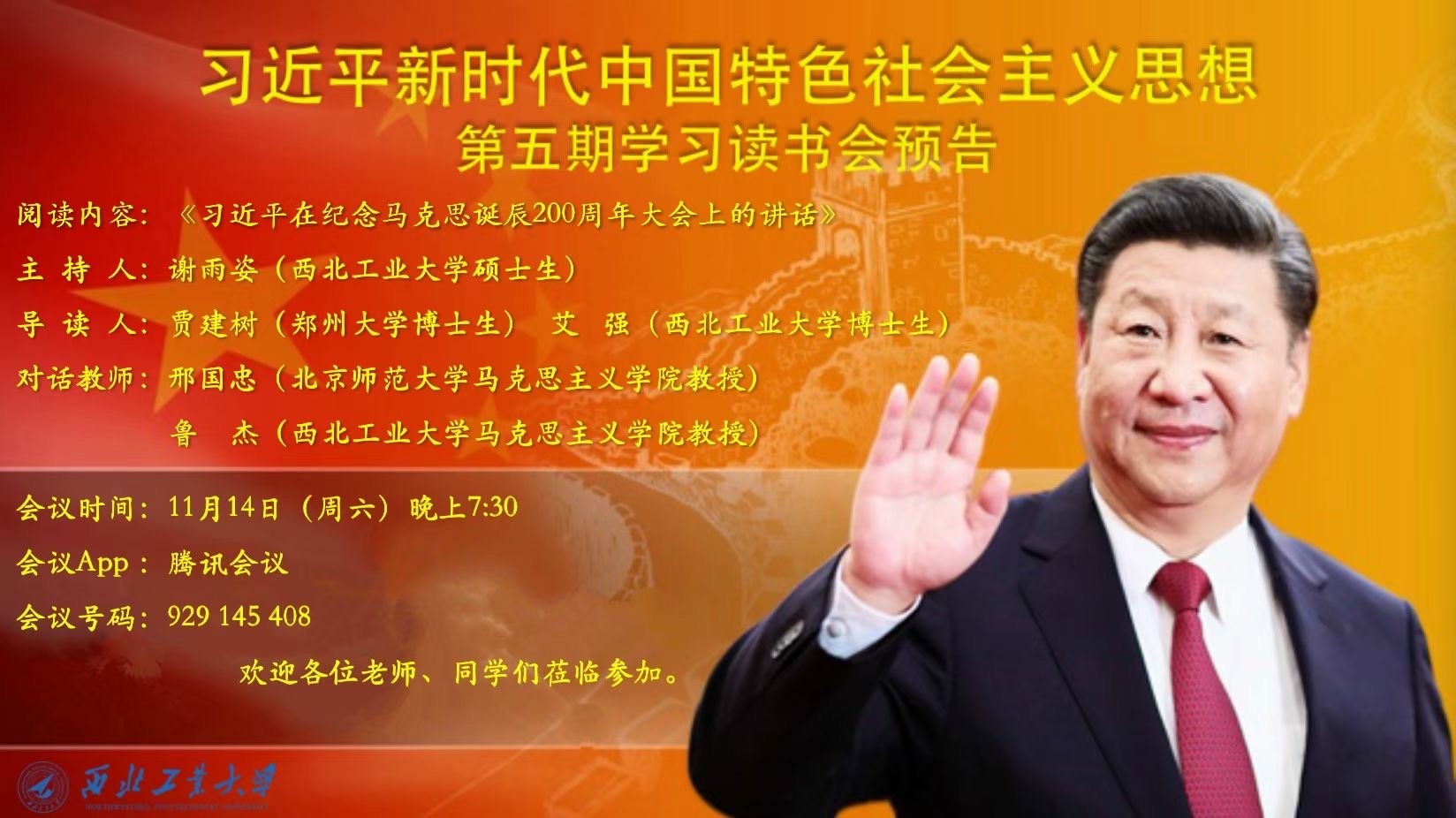 教授、法学博士、博士生导师刑国忠老师作为本次读书会的特邀嘉宾。本次读书会主题主要围绕《习近平在纪念马克思诞辰200周年大会上的讲话》展开。此次活动由Acfan