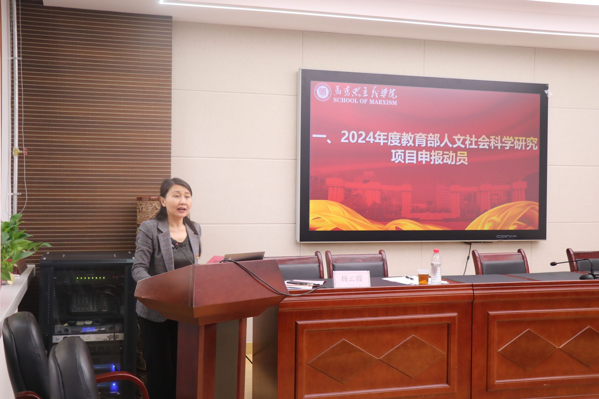 会上,学院院长杨云霞对2024年度教育部人文社会科学研究项目申报做详细解读并动员,她介绍了申报流程和要求。她表示,教师在教学过程中要注重教学与科研的双向链接,围绕学院2024-2027年目标任务书和学院统一规划,建立起自己的“时间表”“任务书”,做到“谋划好了快干”,鼓励教师们积极参与项目申报,展示自己的研究成果。