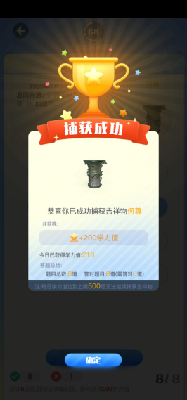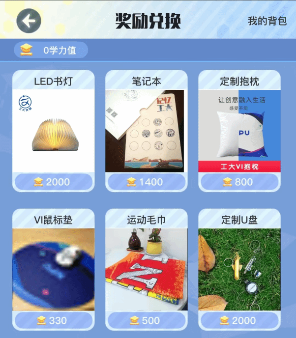参与自主研制的航空、航天、航海等高尖端“大国重器”以及校园标志性建筑物)。再通过思想政治理论知识竞答的方式,将其捕获并赢得相应“学力值”,最终兑换精美的校园文创产品。
