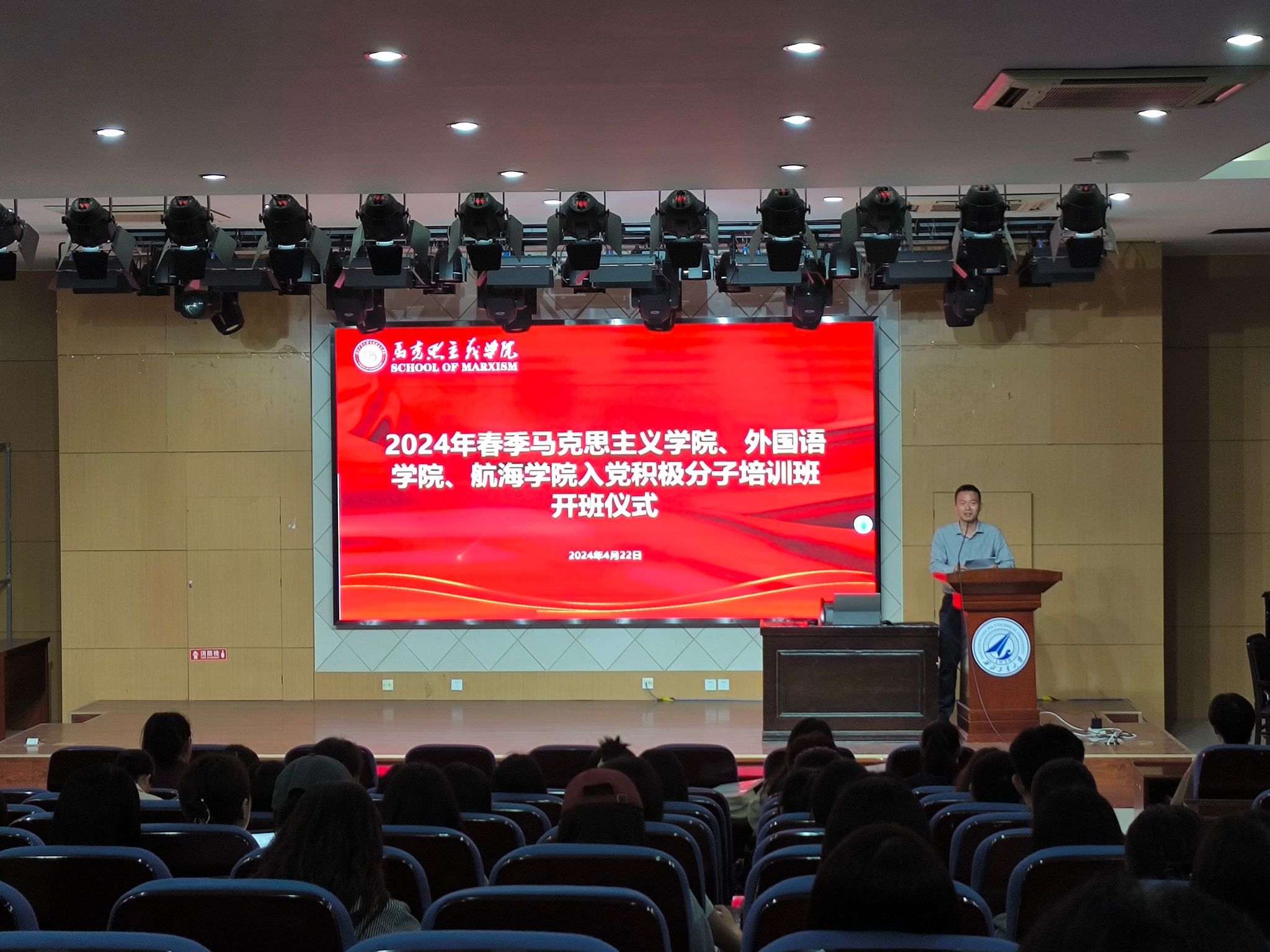 、外国语学院和航海学院联合举办了入党积极分子培训班,参加学生230余人,培训聚焦学理论、强党性、塑价值三个方面,包括专题讲座、宣讲研讨、红色观影、实践研学等环节。在开班仪式上Acfan