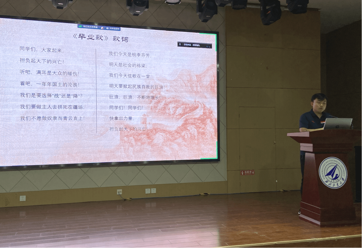 活动伊始,汪毅讲解了《毕业歌》的创作背景。《毕业歌》创作于1934年,是电影《桃李劫》中的一首插曲。影片描写了 “九•一八”事变后,中国青年学生坎坷的生活道路,是中国最早以有声电影手法创作的影片。1931年,日本侵占我国东北,进而向华北进逼,中国的领土和主权不断沦丧,一时间山河破碎、民众流离,北京的青年学子们纷纷走出书斋投入到抗日救亡运动中。当时,由田汉、聂耳组织并领导的中国左翼戏曲家联盟音乐小组在上海成立,他们以空前的热情开展了救亡歌曲的创作活动,而这首由聂耳作曲的《毕业歌》,以其鲜明有力的节奏和富有激情的旋律,极大地鼓舞了青年们的士气。
