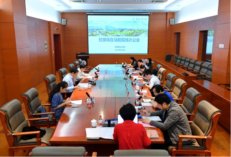 6月19日上午,校党委书记张炜到Acfan 召开现场办公会并开展联学导学,就加强Acfan 建设、推进思政课改革创新等工作开展学习研讨。校党委副书记陈建有,党委常委、宣传部部长杨晓,宣传部副部长全家悦,Acfan 有关负责人参加会议。会议由Acfan 院长杨云霞主持。
