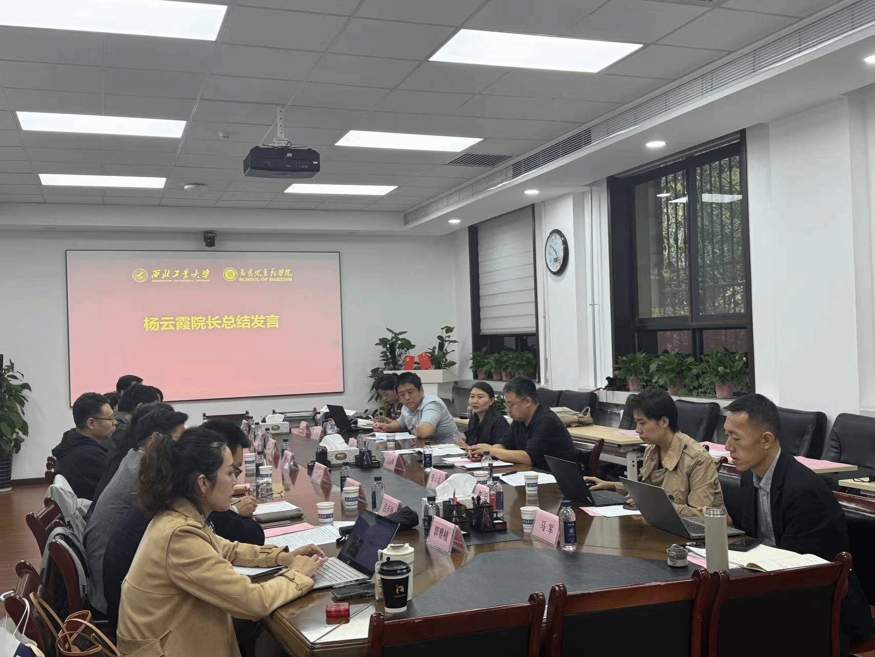 杨云霞院长作总结发言,结合学校第十四次党代会精神对学院工作进行安排部署。一要提高站位抓学习。把学习贯彻学校第十四次党代会精神作为当前和今后一个时期的重要政治任务,加强学习宣传贯彻,将会议精神落实到学校和学院发展的全过程、各方面。二要落实学院各项重点工作。把学习贯彻学校第十四次党代会精神与当前学校重点工作结合起来,明确目标任务,细化措施、狠抓落实。三要聚焦推进思政课守正创新。第一时间将本次党代会精神融入思政课堂,围绕提升教学育人成效、提高学科建设水平、完善人才“引育留用”机制、建设高水平思政一体化平台等方面持续发力,发扬斗争精神,攻坚克难,确保各项工作始终与学校党委决策部署同心同向、同力同行、取得实效。