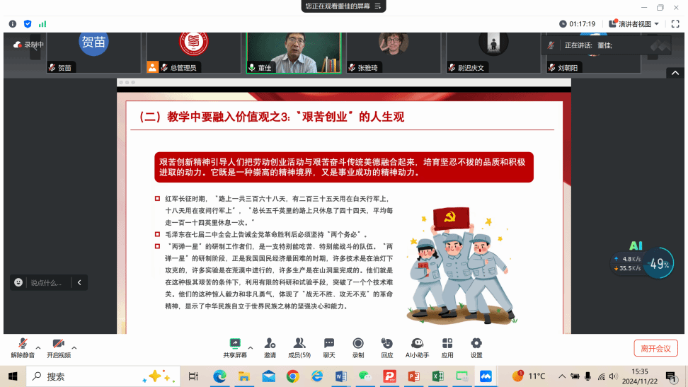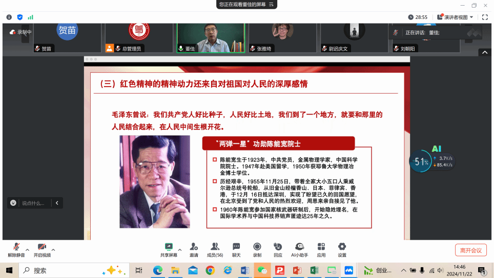 邀请到中国人民大学延安十三年与中国式现代化研究院副院长董佳教授带来了一场主题为“新时代红色精神有机赋能思政课教学研究”的精彩讲座。本次会议由Acfan