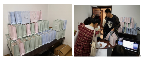 为所有学生精心准备了中秋礼物,学院研究生会和学工组用心策划,细心挑选,在精美的礼品袋中装上好吃的苹果和月饼。小小的月饼,承载着浓浓的爱意,让这个中秋不再孤单;脆甜的苹果,包含着深深的情谊,让青马人的心聚在一起团团圆圆。研会成员和志愿者们为大家分发礼物,并送上美好的节日祝福,同时把温暖传递给正在服务全国第十四届运动会的学院志愿者“小秦宝”们的手中。同学们也纷纷表示,十分感谢学院的关心和祝福,虽然因为疫情不能返家,但仍然感受到家的温暖。
