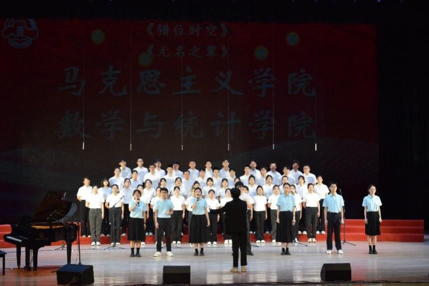 与数学与统计学院师生联合组成的合唱队,以精心编排的节目《错位时空》与《无名之辈》惊艳亮相,展现了昂扬向上的精神风貌,赢得现场热烈反响。