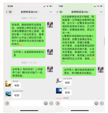 承担的研究生公共课将于1月17日开展在线教学。为确保线上教学顺利开展,及时有效应对突发情况,两门计划在线教学的硕士生课程《新时代中国特色社会主义理论与实践》《自然辩证法概论》于近期通过腾讯会议、微信群分别召开了集体备课会。