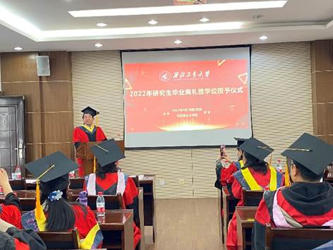 校歌,学位授予仪式正式开始,黄维院士为毕业生们颁发毕业证和学位证,杨云霞院长为毕业生拨穗,并进行了合影留念。
