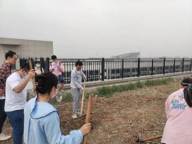 网络空间安全学院李远豪:二十多米高的楼顶竟然还拥有一片可耕种土地,我们抱着体验务农和坚持实践的目的,来到这片不大也不小的耕地上,吹着风,挥动着锄头,松着土地,希望播下小小的种子能够收获果实。过程是艰辛的,但我们可以从中体验农民们劳作的辛苦,同时为我们的学习增添一份动力。