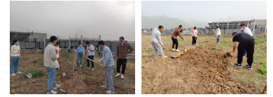 研究生会组织学院学生前往海天苑1号楼,在地块1上与生态环境学院、网络空间安全学院的同学们一起进行劳动。在后勤产业集团李老师和袁师傅的帮助下,同学们学会了使用锄头、铁锹等农具,了解到种地的第一个环节是翻地,也认识了黄花等植物。在劳动过程中,袁师傅耐心指导如何使用工具翻地,同学们认真听讲,并在实践中增长劳动种地的本领。经过两小时的劳作,已有一片土地初步具备了播种的条件。今后三个学院的同学们会定期开展劳动,直至收获。