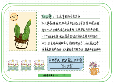 百余名师生通过转发推文集赞的方式,成功领养了多肉盆栽。活动期间,主办单位收到了参与者提交的百余张绿植生长照片及设计新颖、内容详实的“绿植身份证”。