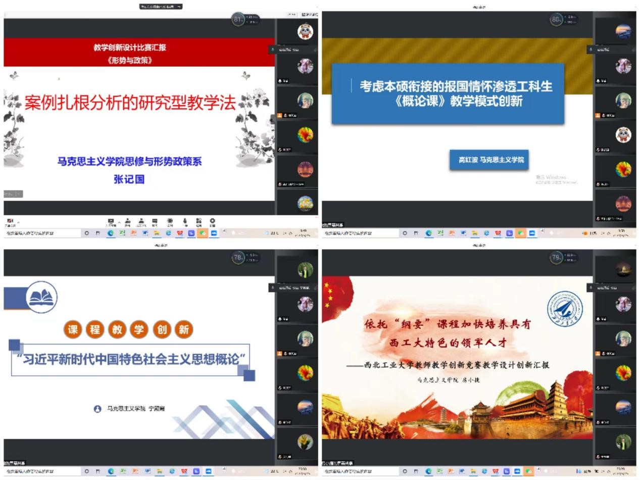 5月26日晚,马院思政课教师相聚云端,举行了2022年校级教学竞赛演练活动。近4年来教学竞赛获奖老师和宁殿霞、房小捷、高红波、张记国四位参赛老师积极探讨,充分交流,为即将到来的正式比赛建言献策。会议由马院副院长、陕西省首届思政课大练兵教学标兵贺苗主持。
