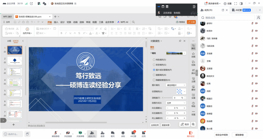 学院2025级博士生张姝瑾、张肖丽、王提滢、杨江楠四位同学作为分享嘉宾,结合自身申博实战经历,从自我评估、材料准备、考核应对、心态调整四大核心维度带来了深入浅出的经验分享。