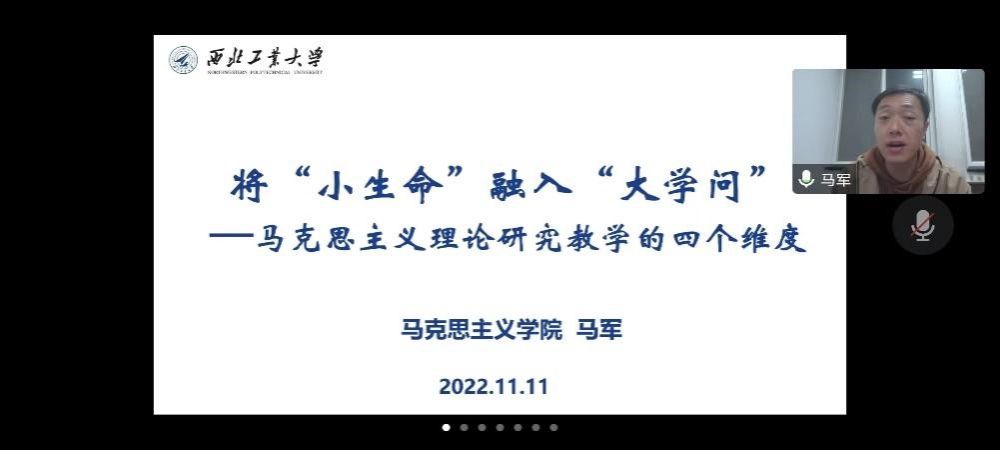 本次会议历时两个小时,马老师做了主题为“将小生命融入大学问—马克思主义理论研究教学的四个维度”的分享。马老师立足于马克思主义理论,从思想、文本、现实和价值四个方面来阐述如何把有限的生命投入到无限的学问中,过有意义的人生。