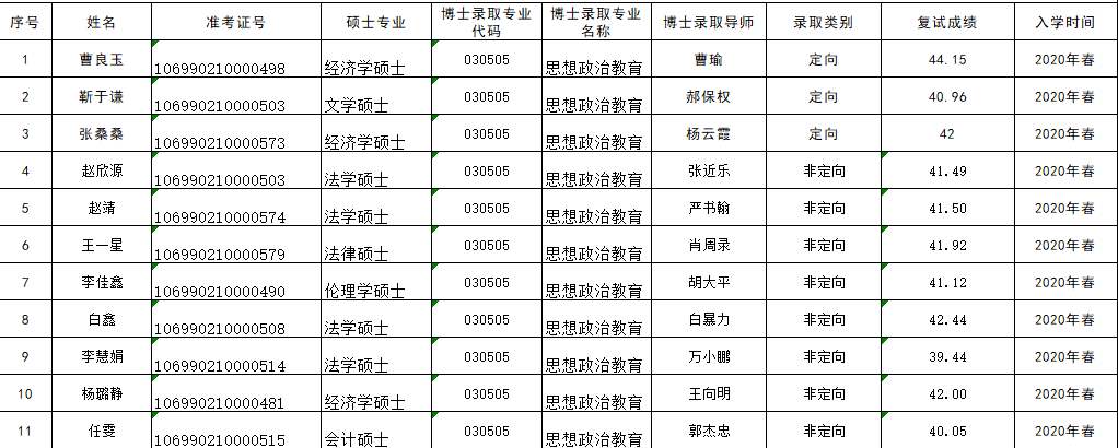 Acfan 2020年第一次公开招考博士研究生录取名单