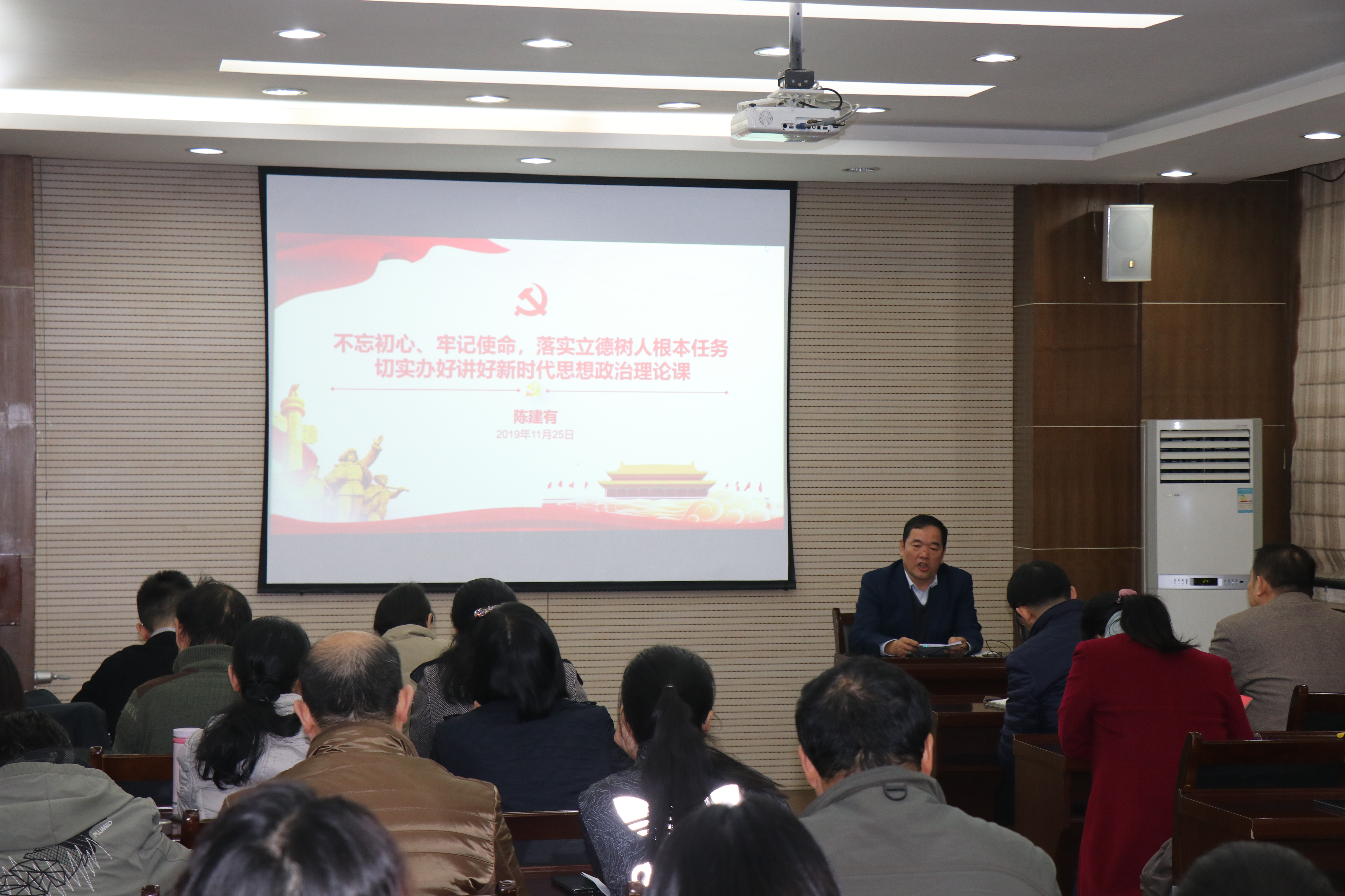 按照学校“不忘初心、牢记使命”主题教育部署安排,11月25日下午校党委副书记陈建有在Acfan 305报告厅围绕“不忘初心、牢记使命,落实立德树人根本任务切实办好讲好新时代思想政治理论课”主题,面向Acfan 全体教师作形势教育报告、讲授专题党课。