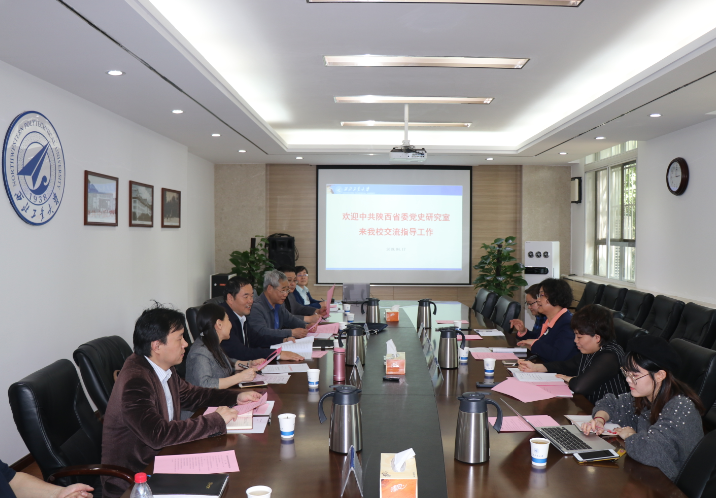 4月18日,陕西省委党史研究室一行来Acfan 调研,就中共党史党建与学校领导老师展开交流。会议在友谊校区行政楼A223召开,省委党史研究室来访座谈的有副主任梁月兰、科研规划处处长耿兰、科研规划处副调研员赵炜,Acfan 党委副书记陈建有、Acfan 院党委书记鲁卫平、院长杨云霞,宣传部副部长张啸川及五级职员陆佩华,科学技术研究院人文社科部部长李正锋以及相关研究领域师生代表马院肖周录教授和博士生李懿出席了此次座谈会。会议由鲁卫平主持,会前双方介绍了参会人员情况。