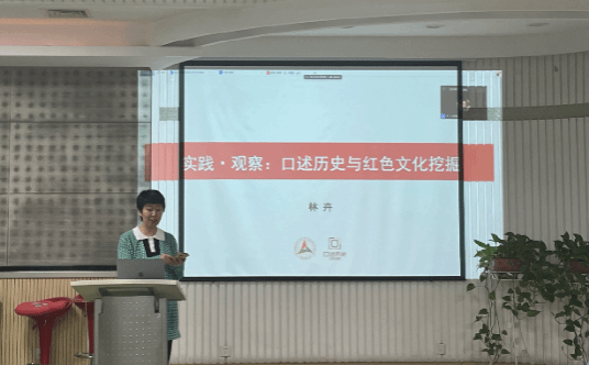 林卉副教授以《实践·观察:口述历史与红色文化挖掘》为主题,首先介绍了“崔永元口述历史研究中心”近年来在口述史实践方面的重大项目,接着总结了自己基于这些项目的行业观察,介绍了她在中国电力、航天、博物馆等领域大型口述历史项目的具体实践经验,最后对Acfan 师生开展的“红色文化口述史”的实践提出了具体的富有建设性与可操作性的建议。