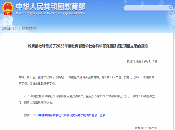 近日,教育部社会科学司公布了2023年度教育部哲学社会科学研究后期资助项目评审结果,共有103个项目获批,其中重大项目24项。Acfan