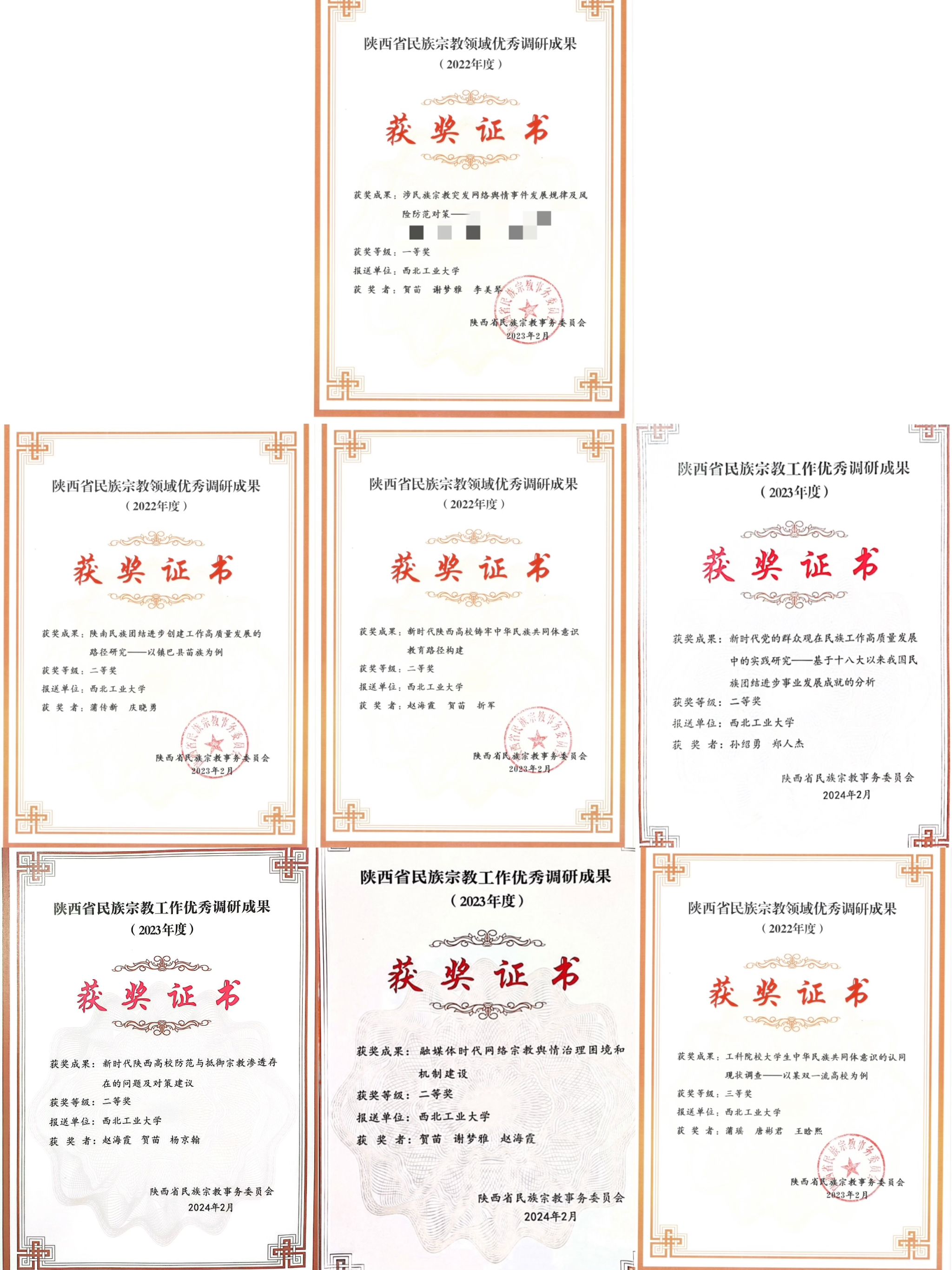 荣获2022、2023年度陕西省民族宗教工作优秀调研成果名单
