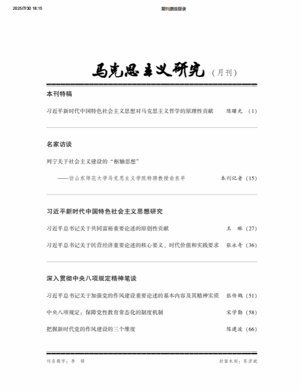 张永奇教授在权威期刊《马克思主义研究》2025年第7期发表题为《习近平总书记关于民营经济重要论述的核心要义、时代价值和实践要求》的学术论文,深入研究、阐释、宣传习近平经济思想,产生广泛学术影响。