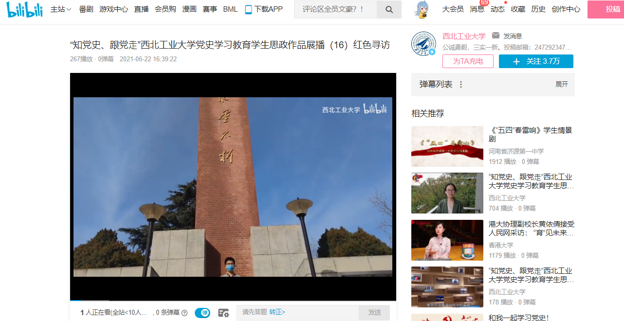 bilibili官方平台展播,至今已有数十个作品在b站与大众见面,这些作品或形式新颖,或史实扎实,或真情流露,都是工大学子用自己的方式向中国共产党成立100周年献礼。