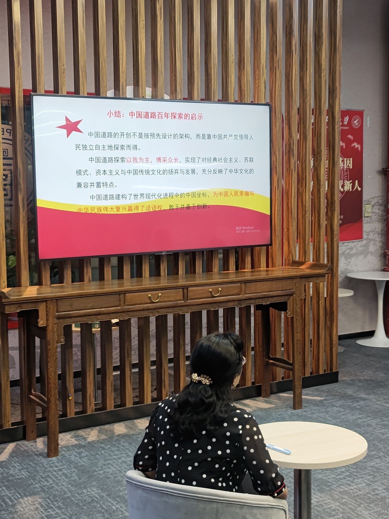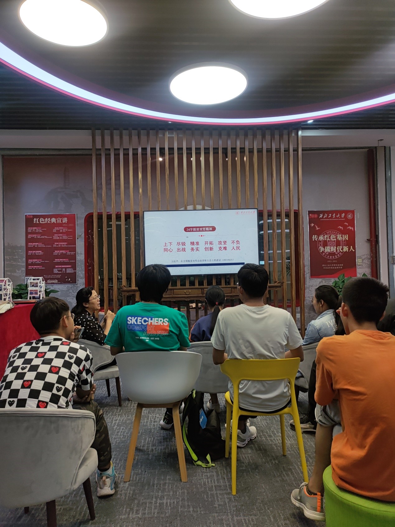 成立了思政课教师党史宣讲团和学生党史学习教育宣讲团,围绕党的历史、党的建设等方面开展宣讲。自6月15日开始,思政课教师宣讲团在图书馆红色书屋开始送讲活动,每天都有一位老师进行宣讲。学生党史学习教育宣讲团目前已在校内外宣讲10余次,覆盖30余个党团支部,真正做到在马信马,在马言马,学史增信,笃学力行。