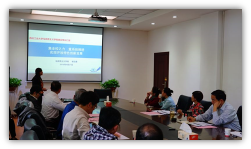在听取了工作汇报之后,纪委书记张海兰对两个学院工作进行点评并讲话。张海兰首先肯定了大家的发言和近年来在实际工作中付出的努力及取得的成效,尤其是对Acfan 在近期陕西省重点马院现场考察和本科教学评估中展现的积极向上的精神风貌表示赞许。其次,张海兰指出当前还需要进一步推进的工作,如Acfan “红色文化大数据中心”建设还需要进一步展开;省委重点课题也要持续推进,相关负责人要每年度按时提交相关研究成果;陕西省重点舆情信息研究中心建设,“思政课大练兵”,八支队伍建设等均需要持续的推进。接着,张海兰强调两个学院要认真做好巡视整改专项检查,要对照本科教学评估反馈意见拿出整改方案;两院的师资队伍引进,外引內育也亟需加强推进。此外,张海兰针对两个学院学科建设,建议领导班子和学科带头人要到一流高校调研,对照先进,找出自身的差距,制定自己的提升目标和举措,并落实到位。最后,张海兰要求两个学院要落实好“抓班子,带队伍,促发展”,院党委成员要严格要求自己,以身作则,不仅要按要求落实好各项工作,还要关心教职工的长远发展。