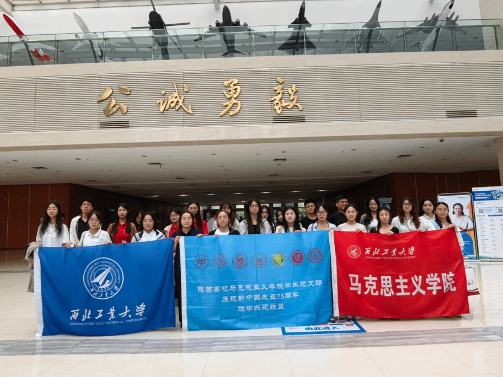 校史馆和航空博物馆。通过珍贵的历史照片、丰富的文献资料以及各类航空器模型,同学们从西工大“脉源三支”的深厚底蕴中感受独有的“西工大现象”,进一步领悟“总师育人文化”的深刻内涵,激发爱国主义精神,增强民族自信心和自豪感。