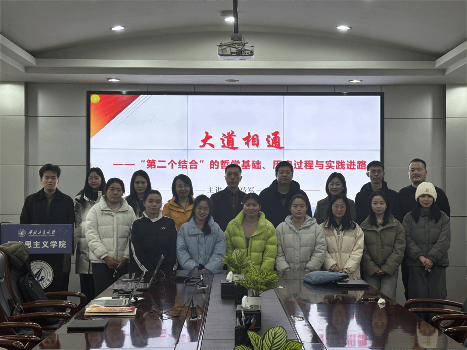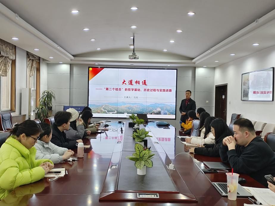 院长助理马军应邀在学院楼208会议室讲授“大道相通——‘第二个结合’的哲学基础、历史过程与实践进路”专题党课。本次党课由思想政治教育系党支部书记鲁杰主持,思想政治教育系党支部联合思想政治教育系硕士生党支部全体党员共同参与学习。在场师生学习氛围浓厚,讨论热烈。