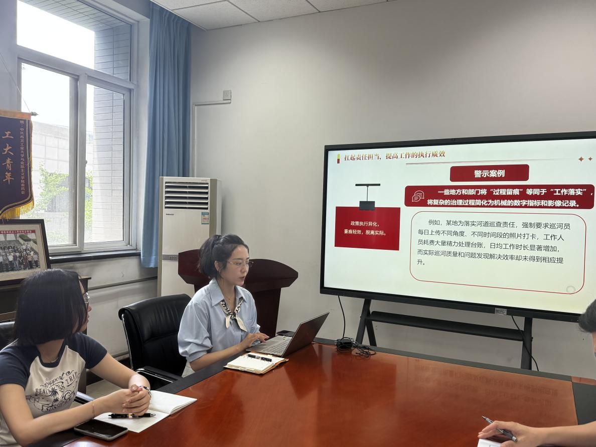 机关党支部书记郭雅楠以《更好发挥院办作风建设‘示范窗’和服务师生‘连心桥’作用》为题在学院楼209党员活动室,为学院机关党支部讲授深入贯彻中央八项规定精神学习教育专题党课。