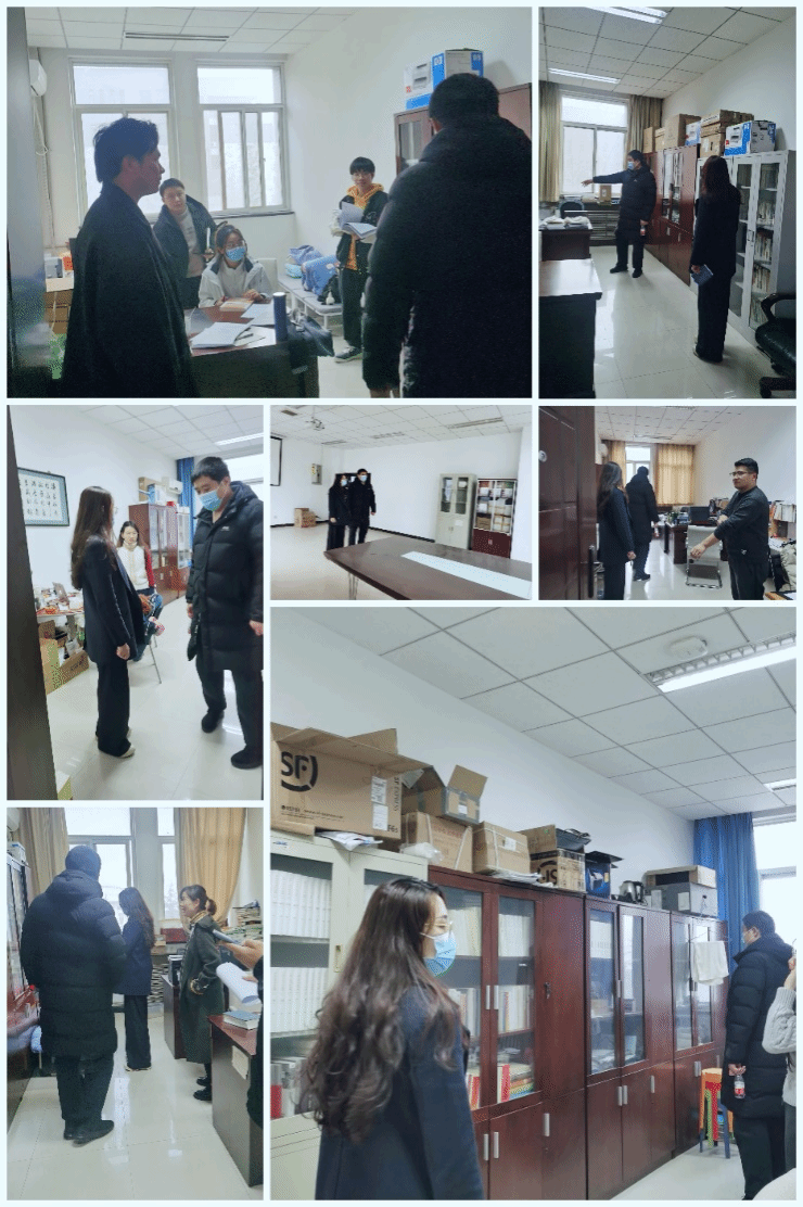 学院党委副书记李刚,办公室主任郭雅楠、安全员刘敏、资源保障秘书何达艳一行排查了学院会议室、教职工办公室、楼道公共区域的消防、公房使用安全状况;重点检查会议室的电路电源是否裸露、就近安全疏散通道是否畅通、就近灭火设备是否完好、是否存在改变公房功能使用的情况;检查教师办公室是否存在大功率用电设备、设备线路老化、试卷考卷杂物堆积、卫生状况、房内前面地面的建筑安全隐患等。