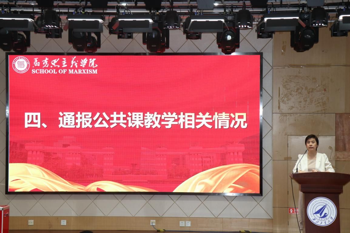 最后,副院长贺苗通报公共课教学相关情况,说明本学期期末成绩的提交时间和上传要求,并动员老师们参与思政课程课程思政教师“大练兵”活动。