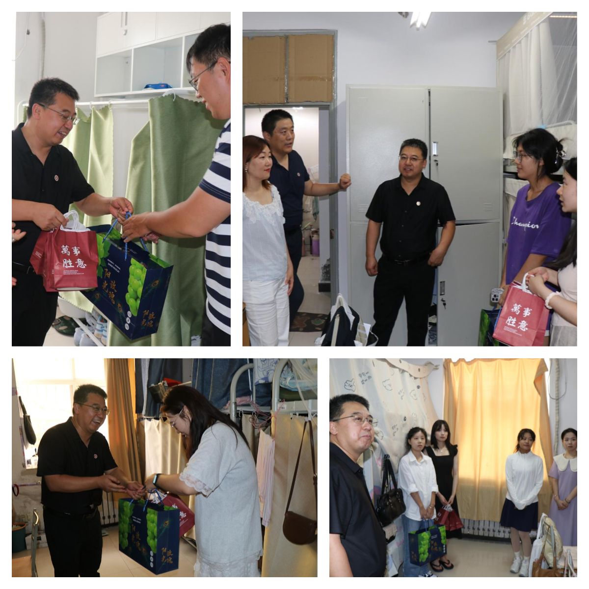 学校学工部发放了中秋月饼,学院用心挑选中秋节礼物,让所有学生感受到来自学校和学院的满满心意。小小的月饼,承载着浓浓的甜蜜与爱意;香甜的葡萄,包含着深深的情谊和祝福。学院党委书记王彦革等一行人走进学生宿舍,代表学院为大家分发礼物,送上美好的节日祝福。同学们也纷纷表示,十分感谢学校学院的关心和祝福,并感受到了家的温暖。同时,王彦革特别关注学生宿舍安全与卫生情况,叮嘱同学们注意宿舍用电安全、保持宿舍卫生清洁。