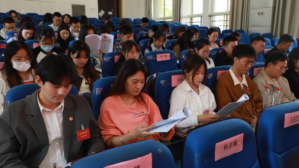 团委书记王换、计算机学院团委书记靳宇琪、数学与统计学院团委书记程姣姣、生态环境学院团委书记景丽、校研究生会代表郭彧昌和六个代表团共49名与会代表以及学院其他研究生出席会议。大会由Acfan