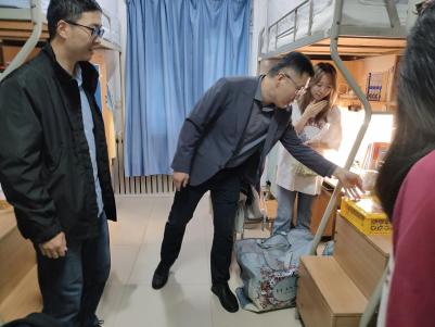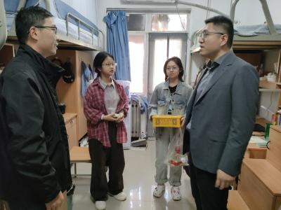 大家庭,感受到学院的温暖和关怀,2025年9月30日,学院党委副书记耿云辉、辅导员董润、学工主管刘敏一行走进学生宿舍,开展了“中秋送温暖”活动。