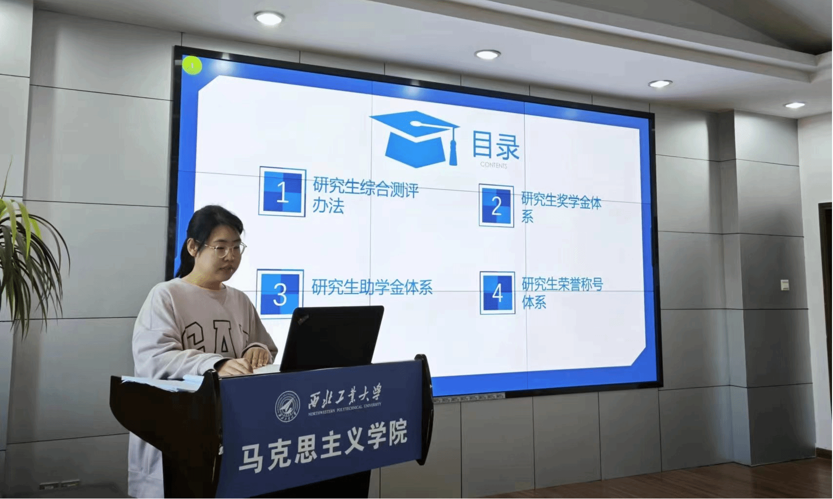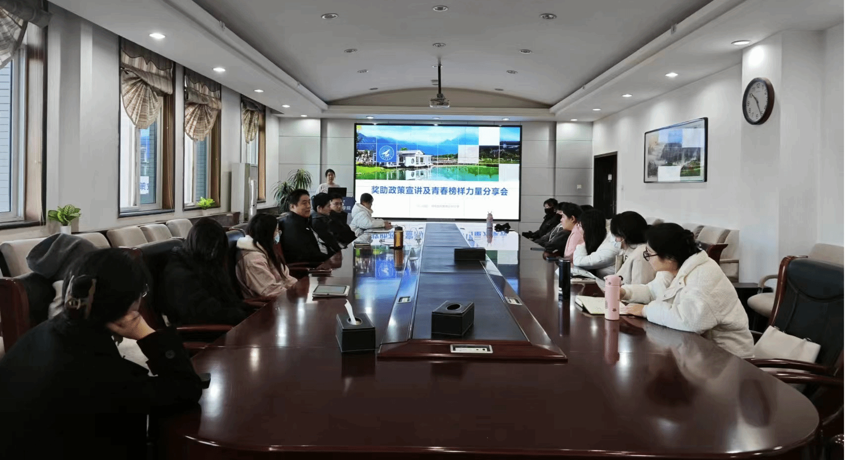 于12月7日上午在208会议室举办了“奖助政策宣讲及青春榜样力量分享会”。会议由学院兼职辅导员邵明岚主持。