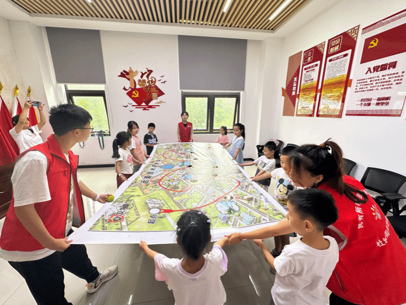 7月10日上午,一场别开生面的防溺水安全教育活动拉开帷幕。实践队员和志愿者们带领社区儿童进行了“救生衣接力赛”“防溺水安全飞行棋”“简易救生衣制作”“营救小熊”等开场游戏,通过寓教于乐的方式激发了孩子们的参与热情。随后,向孩子们科学普及了救生衣正确穿戴方法、远离溺水源等防溺水安全知识。为提高活动的趣味性和暑期安全知识的掌握程度,活动还设置了快问快答等方式进行互动,孩子们争先恐后抢答,现场气氛十分活跃。