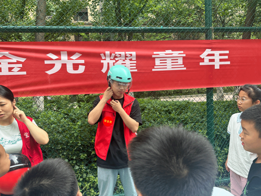 “青展新风采”暑期社区实践队联合心火志愿者学生服务队前往西安雁塔区杜城街道金地西沣公元二期社区共同开展“守护童心,安全同行”暑期社区安全教育主题实践活动,以扎实举措、齐心协力、共同行动,筑牢暑期安全屏障。