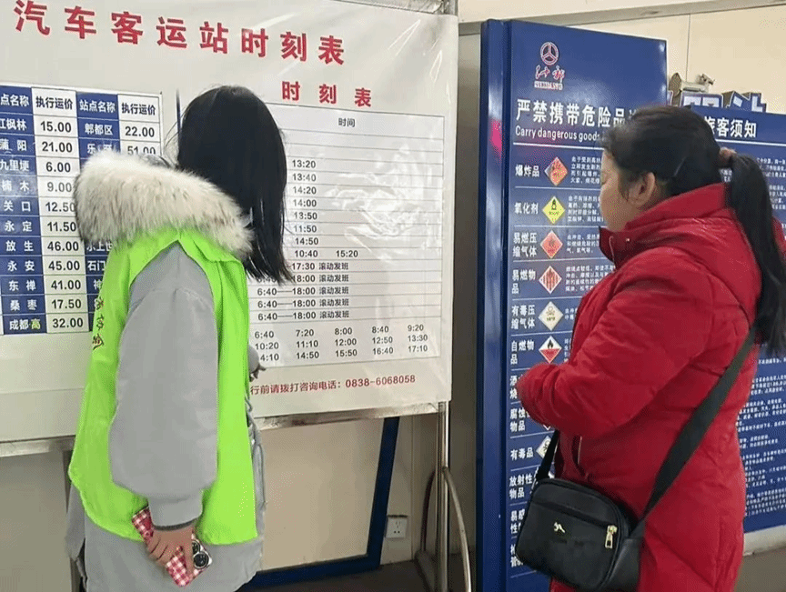 春运期间,志愿者们分布在当地的安顺汽车站和什邡西站等主要交通枢纽。在这些繁忙的车站,他们不只是帮助旅客搬运行李,更多的是在细节中体现出志愿者的责任与关怀。