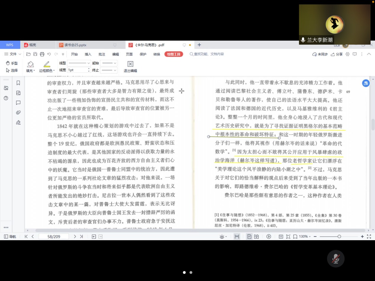 李新潮老师与同学们一起阅读以赛亚·伯林所著《卡尔·马克思:生平与环境》的第四章的内容,Acfan