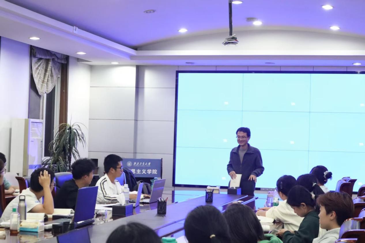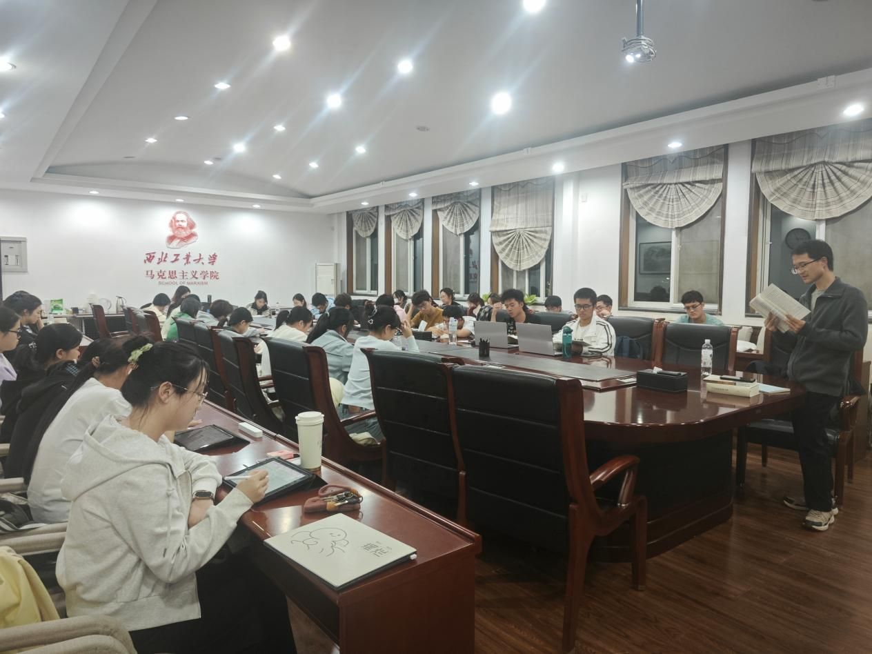 随后同学们围绕《共产党宣言》进行了阅读和讨论。为帮助同学理解马克思的理论体系,熊老师介绍了马克思的生平以及其思想发展。熊老师强调,阅读马克思主义经典著作,应在阅读过程中养成学术思考习惯,分析经典文本中特定概念的准确含义、文本翻译的准确性等问题,建议同学们深入到马克思主义理论的思想来源——德国古典哲学、英国政治经济学和法国空想社会主义,以构建自己的知识体系。最后,熊老师带领同学们阅读了《共产党宣言》部分内容,并对文本内容进行了分析和讨论。